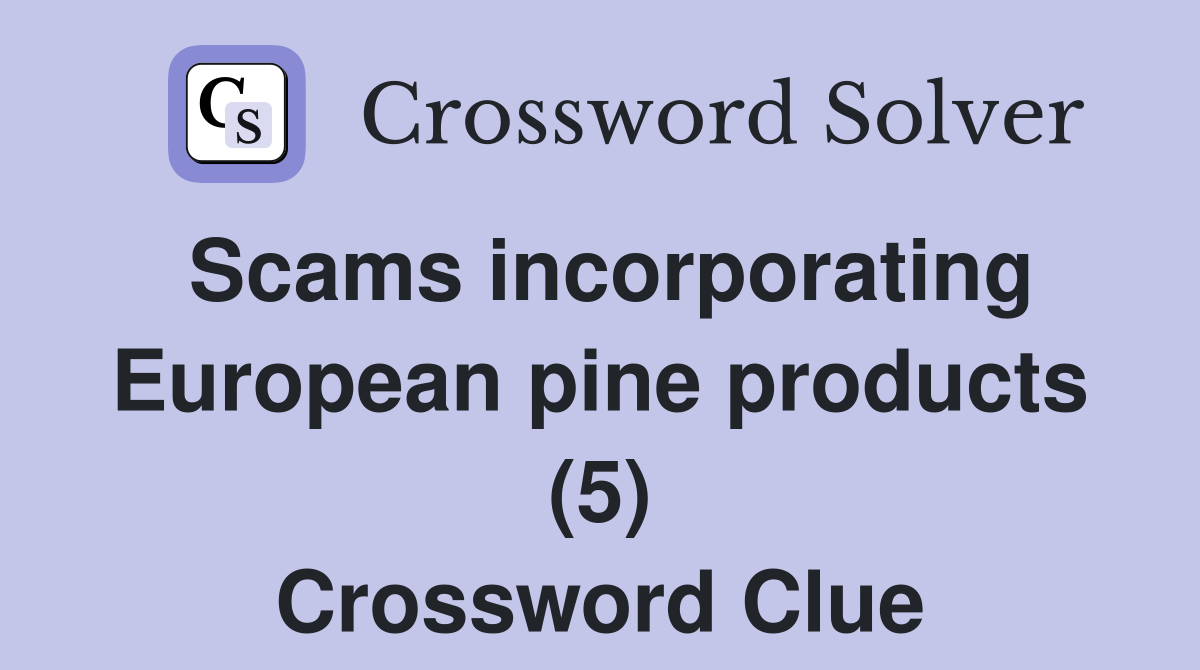 Scams incorporating European pine products (5) Crossword Clue Answers