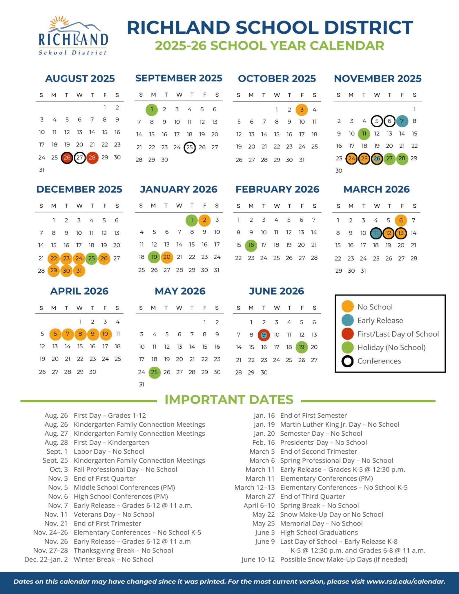 Richland School District WA Calendar 25 26 Revised PDF EduCounty