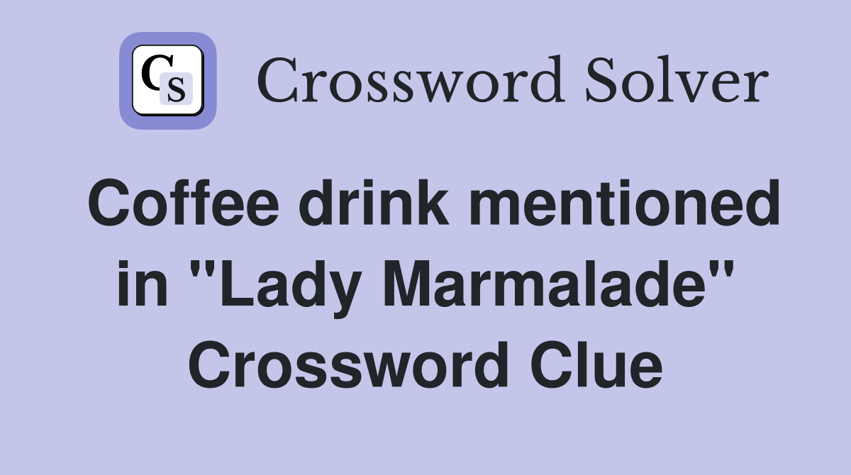 Coffee drink mentioned in quot Lady Marmalade quot Crossword Clue Answers