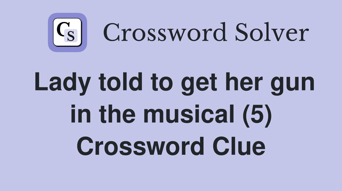 Lady told to get her gun in the musical (5) Crossword Clue Answers