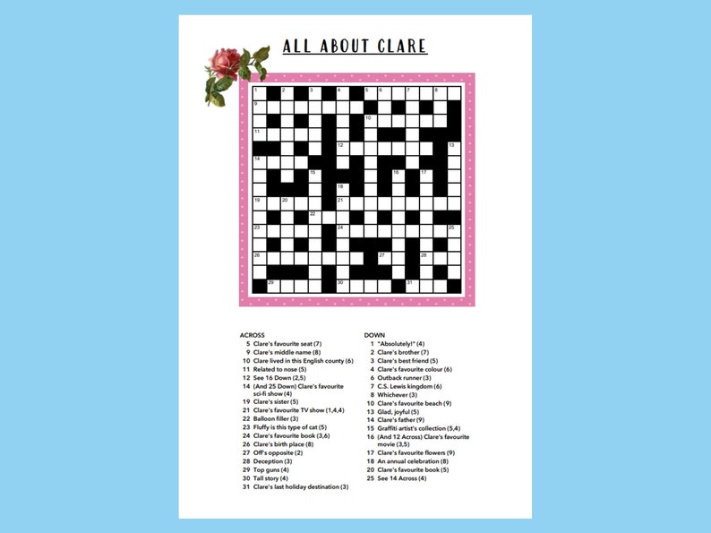 Printable CUSTOM CROSSWORD Puzzle Digital Birthday Gift PDF