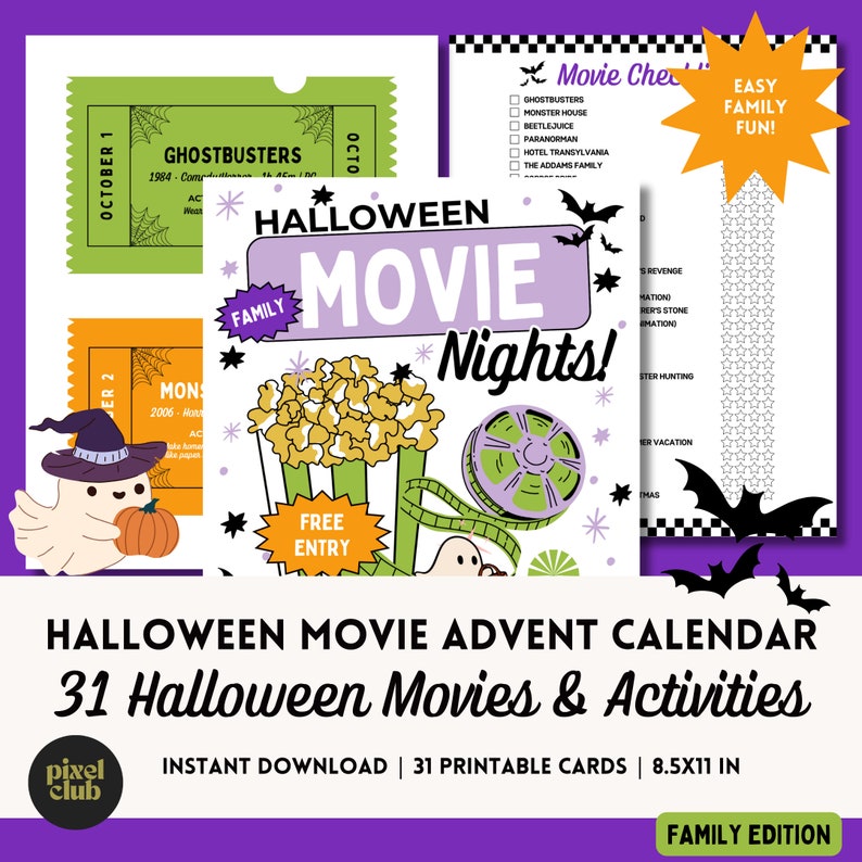 Family Movie Night Printable Halloween Movie Checklist Halloween