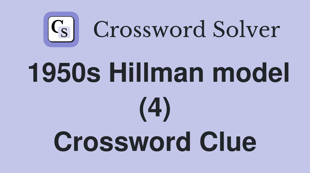 1950s Hillman model (4) Crossword Clue Answers Crossword Solver