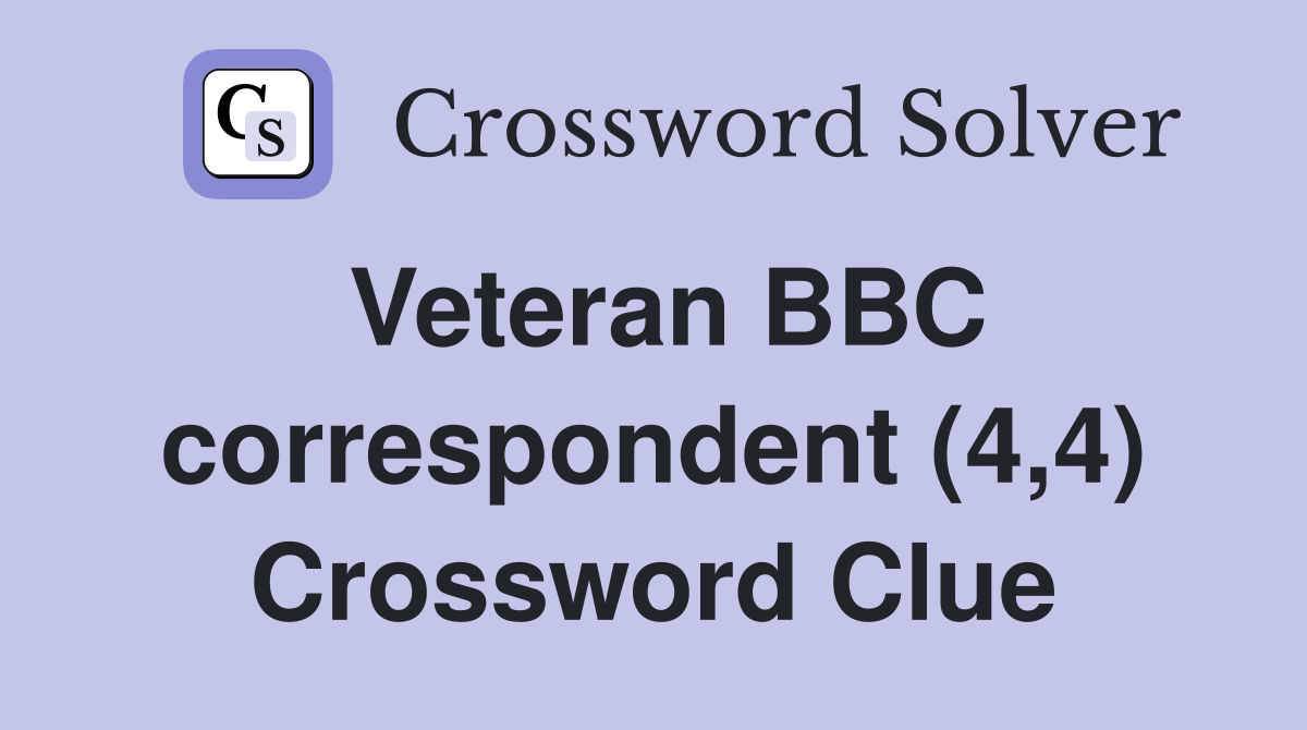 Veteran BBC correspondent (4 4) Crossword Clue Answers Crossword Solver