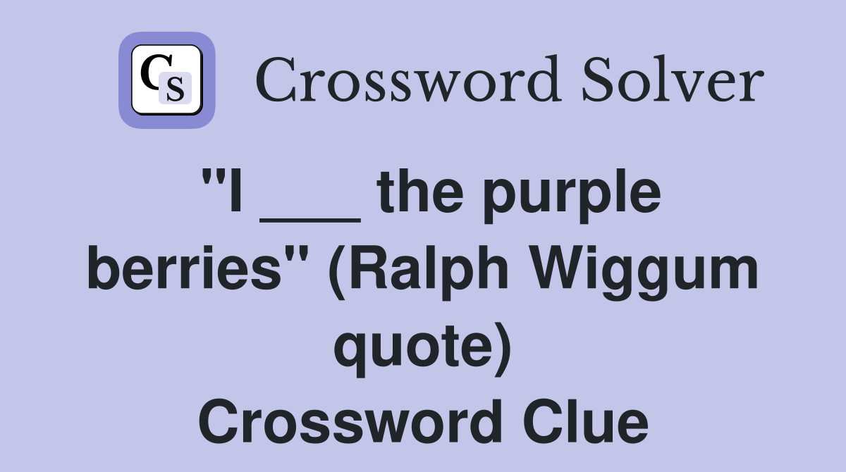 quot I the purple berries quot (Ralph Wiggum quote) Crossword Clue