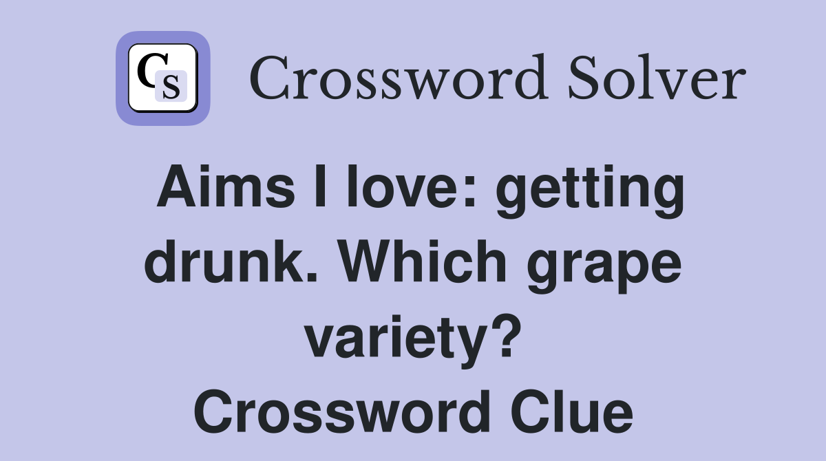 Aims I love: getting drunk Which grape variety? Crossword Clue