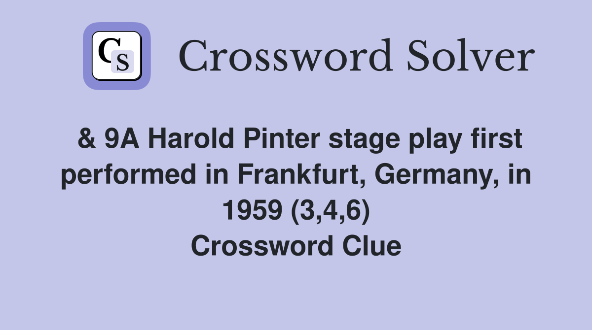 1969 play by Harold Pinter (9) Crossword Clue Answers Crossword Solver