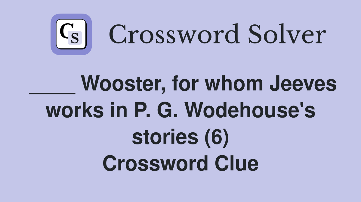 Wooster for whom Jeeves works in P G Wodehouse s stories (6