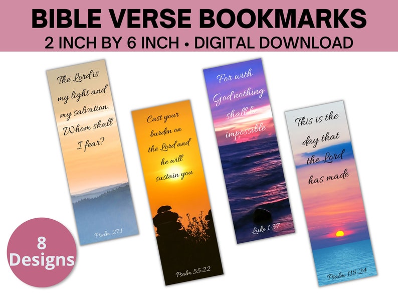 Set of 8 Bible Verse Bookmarks Printable Bible Verse Etsy