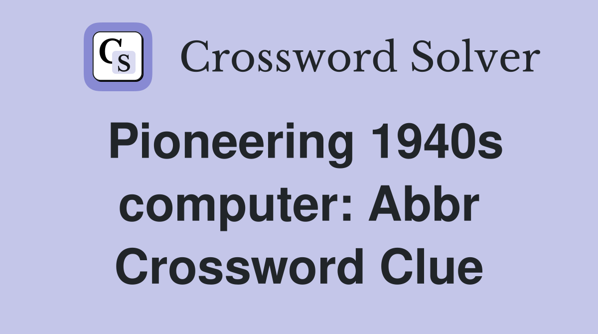 Pioneering 1940s computer: Abbr Crossword Clue Answers Crossword