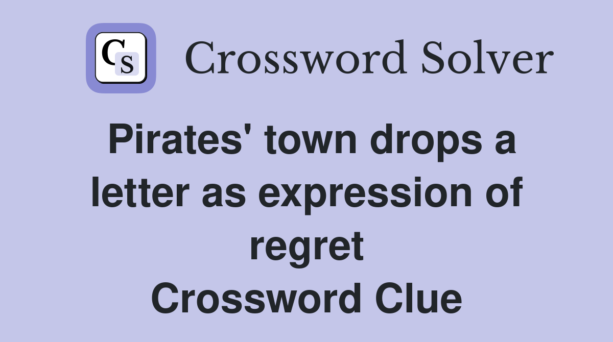Pirates #39 town drops a letter as expression of regret Crossword Clue
