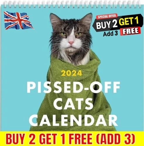Funny Pissed Off Cat Calendar 2024 UK Wall Calendar Planner 12 Monthly