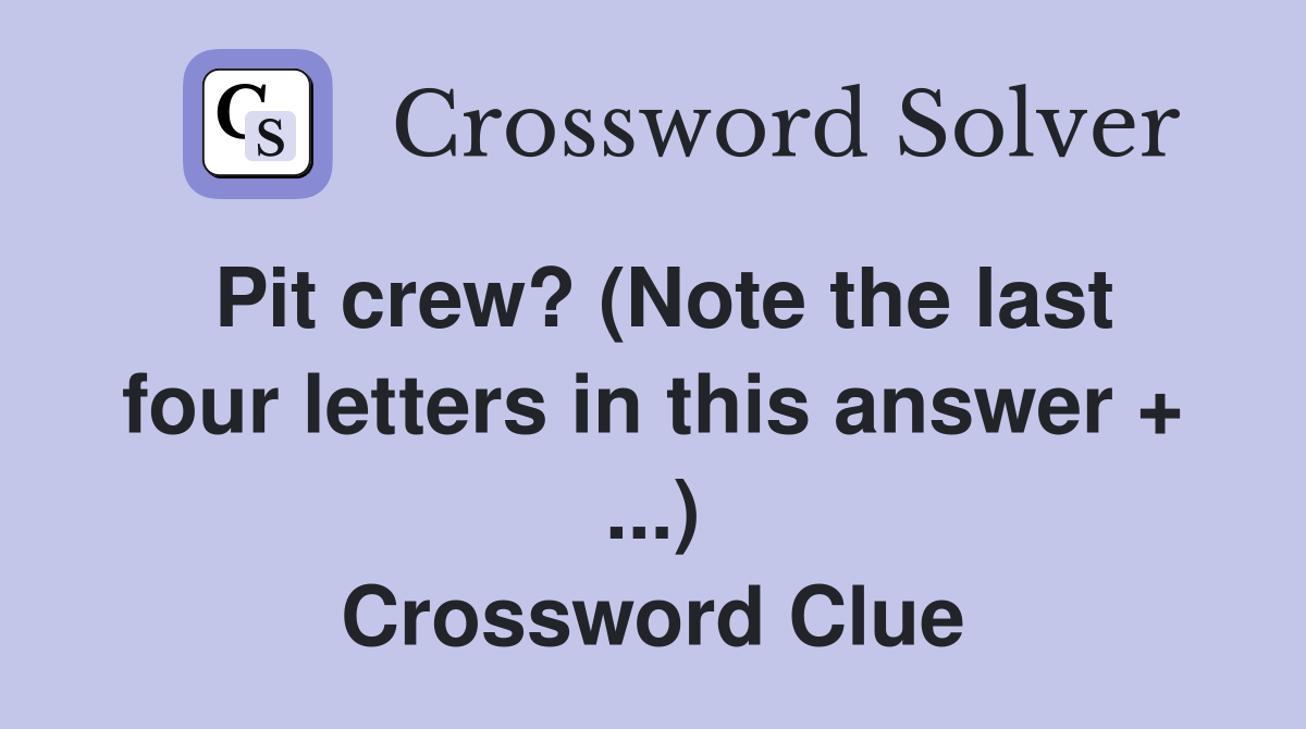 Pit crew? (Note the last four letters in this answer ) Crossword