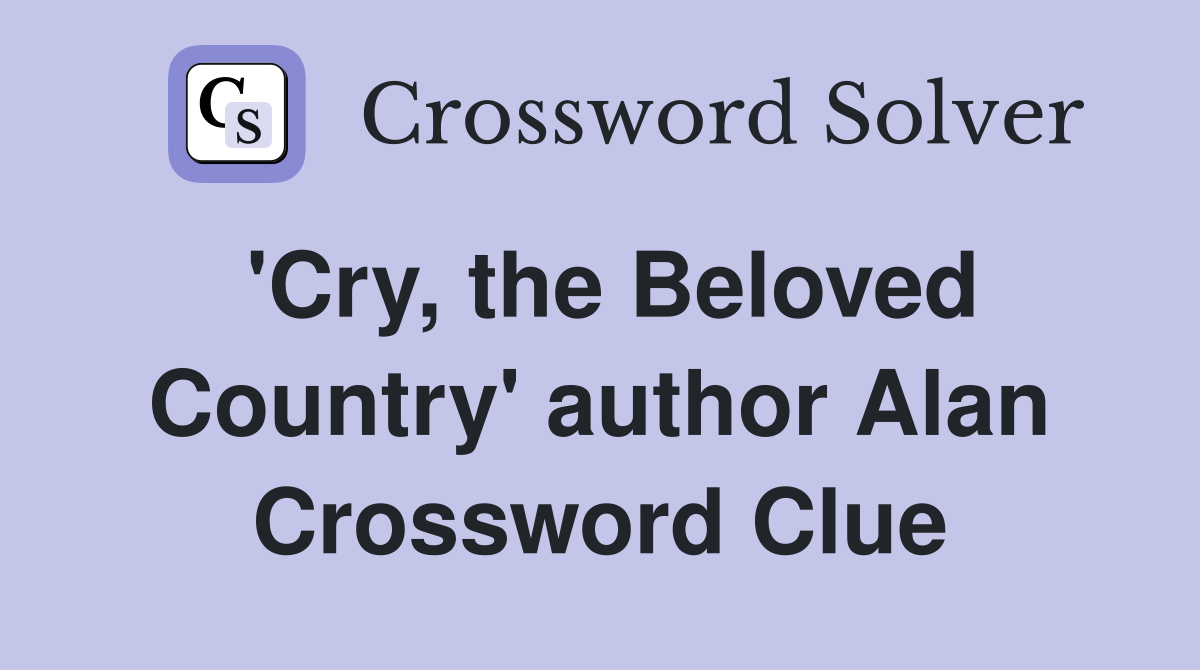 #39 Cry the Beloved Country #39 author Alan Crossword Clue Answers