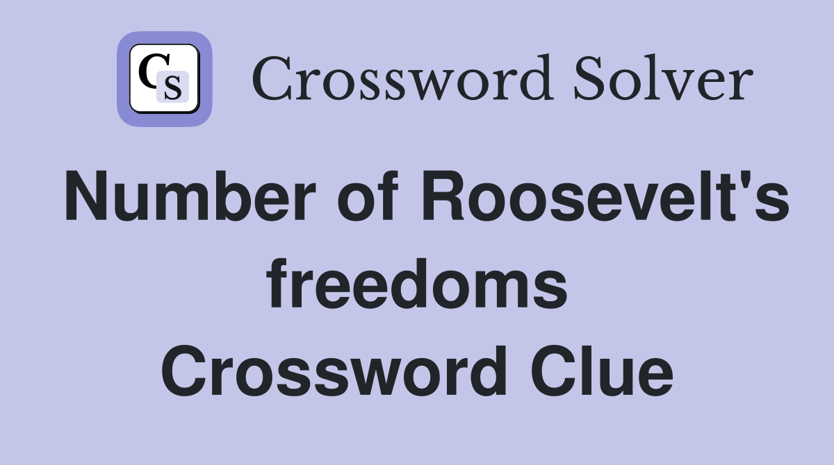Number of Roosevelt #39 s freedoms Crossword Clue Answers Crossword Solver