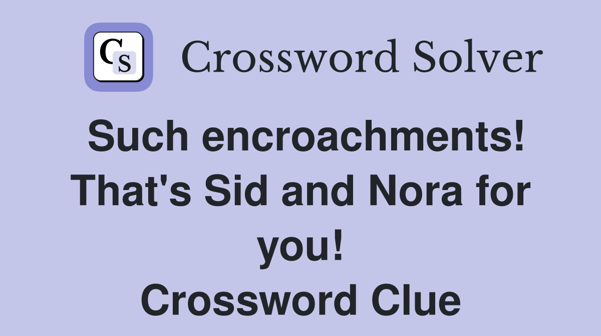 Such encroachments That #39 s Sid and Nora for you Crossword Clue