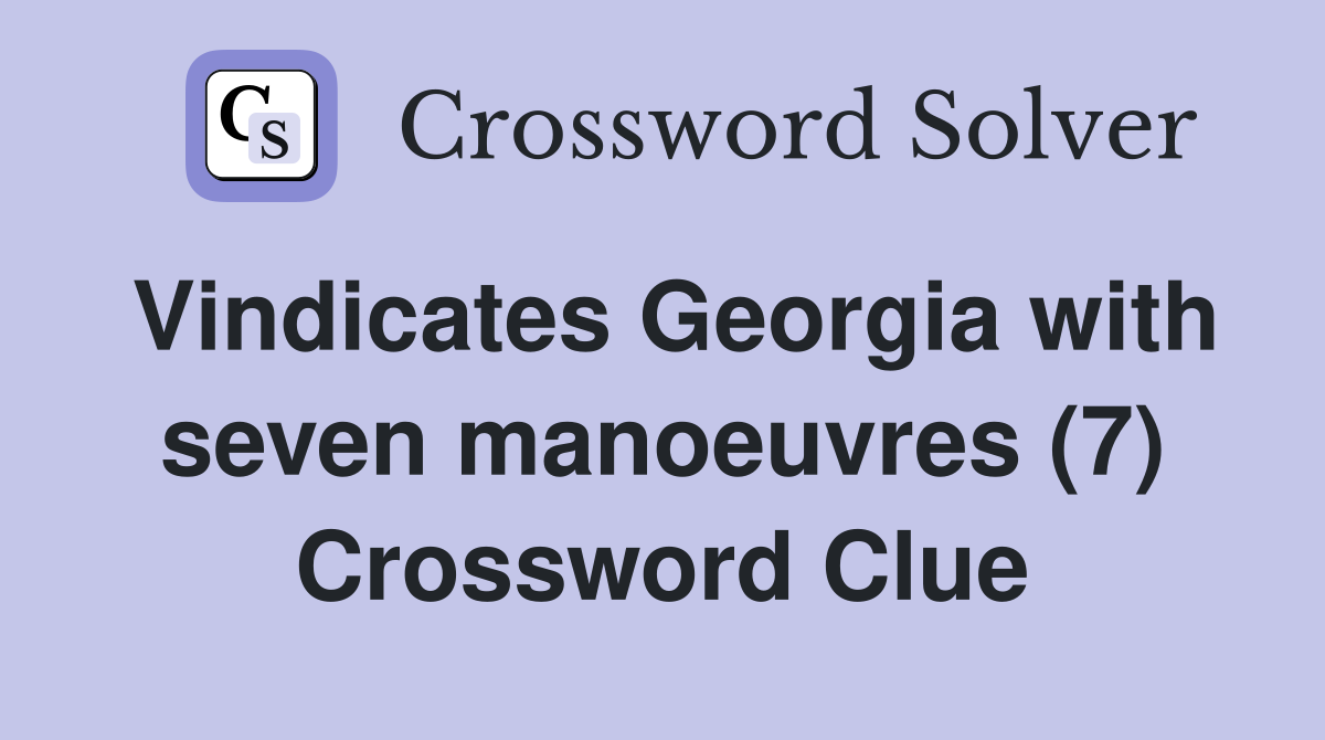 Vindicates Georgia with seven manoeuvres (7) Crossword Clue Answers