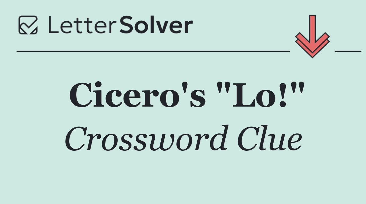 Cicero #39 s quot Lo quot Crossword Clue Answers