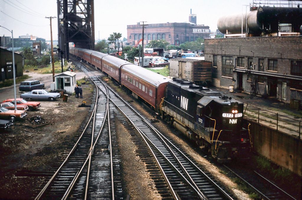 transpress nz: Norfolk Western commuter train at Chicago 1977
