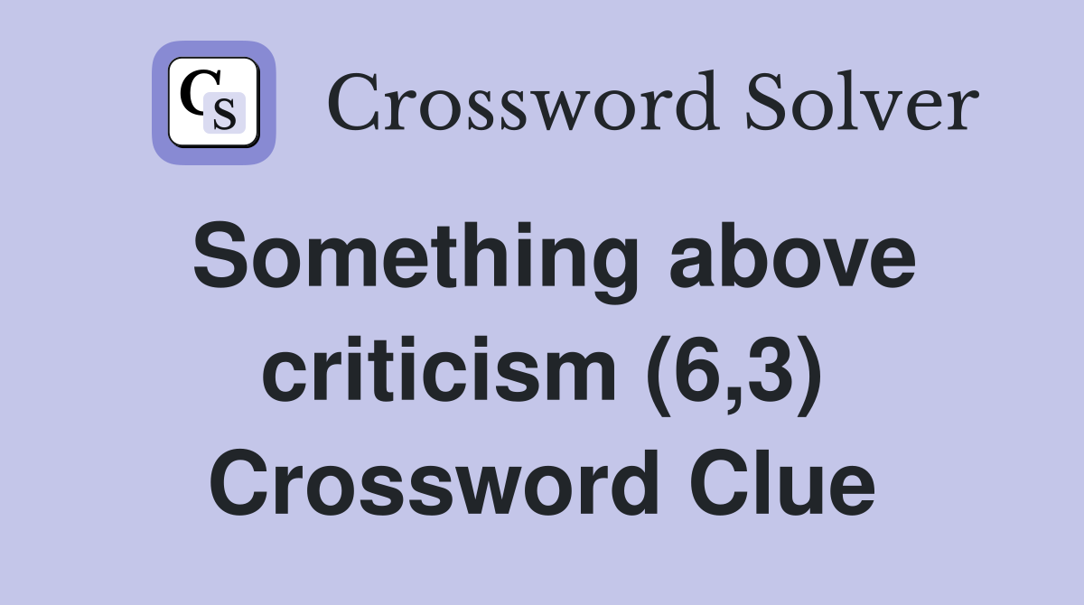 Something above criticism (6 3) Crossword Clue Answers Crossword Solver