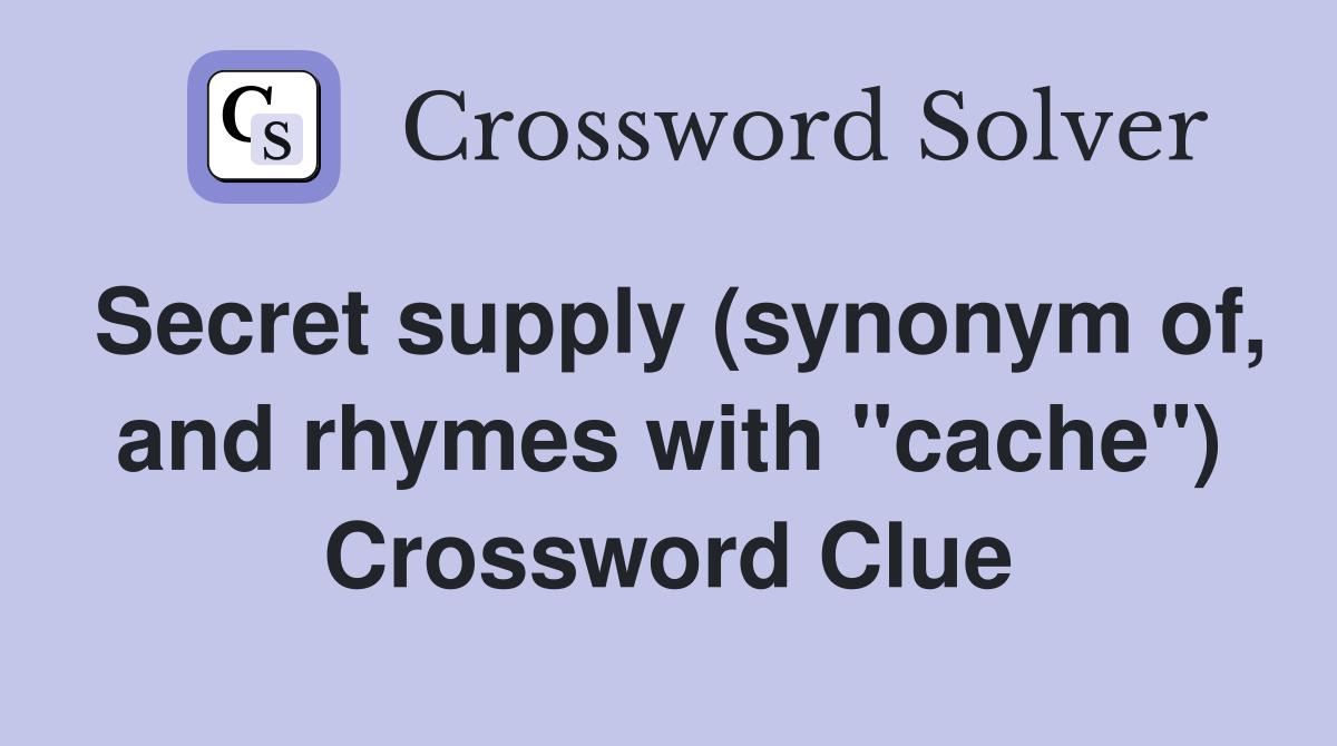 Secret supply (synonym of and rhymes with quot cache quot ) Crossword Clue