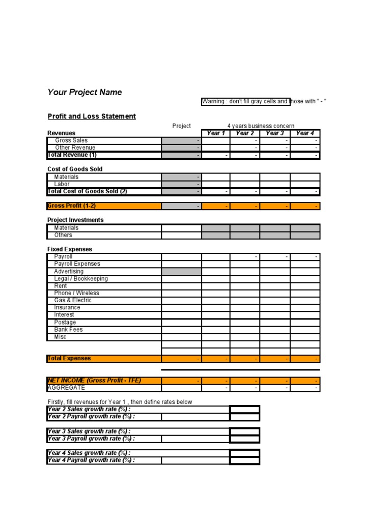 Profit And Loss Projection Template astra edu pl