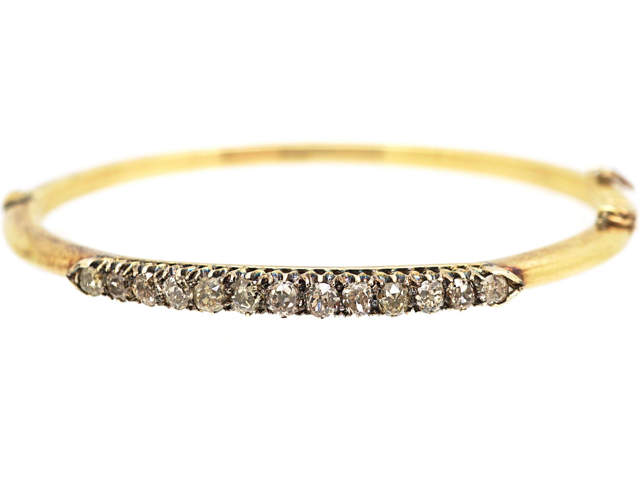 Edwardian 15ct Gold Bangle set with Old Mine Cut Champagne Diamonds