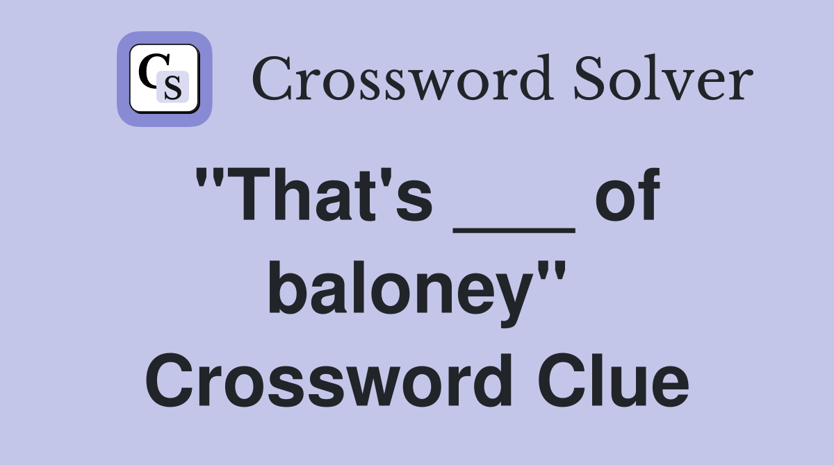 quot That #39 s of baloney quot Crossword Clue Answers Crossword Solver