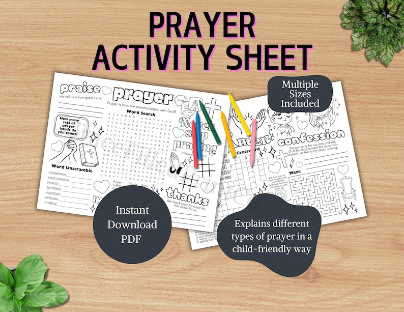 Prayer Educational Activity Placemat for Kids and Teens Biblical