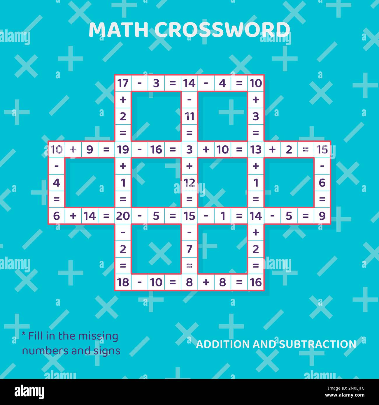 Math Crossword puzzle for children solve examples Education materials