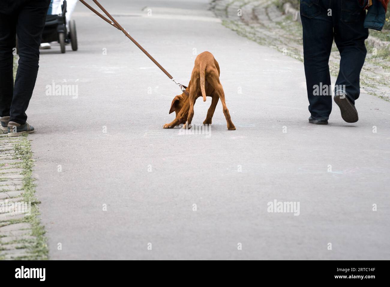 dog on a leash Stock Photo Alamy