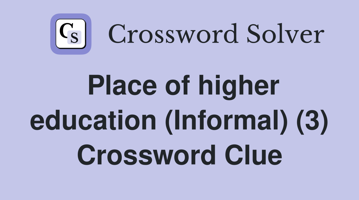 Place of higher education (Informal) (3) Crossword Clue Answers
