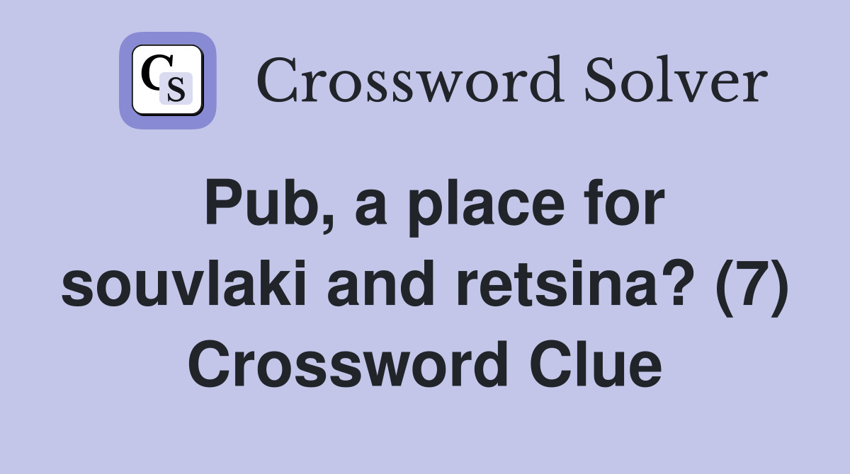 Pub a place for souvlaki and retsina? (7) Crossword Clue Answers