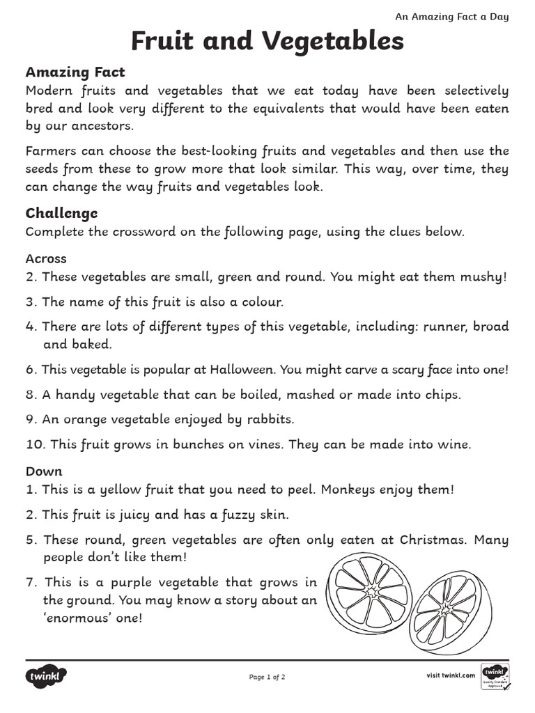 Fruits and Vegetables Crossword PDF Vegetables Fruit