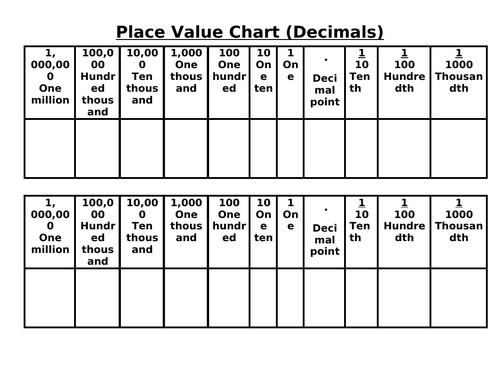 13 Best Images of Blank Place Value Worksheets Place Value Chart with