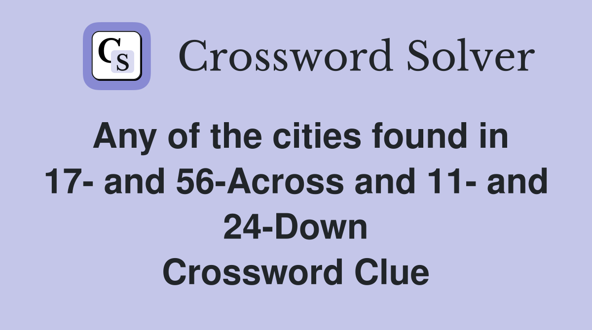 Any of the cities found in 17 and 56 Across and 11 and 24 Down