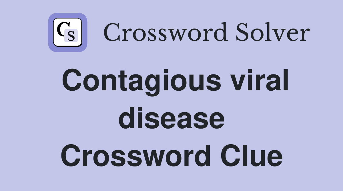 Contagious viral disease Crossword Clue Answers Crossword Solver