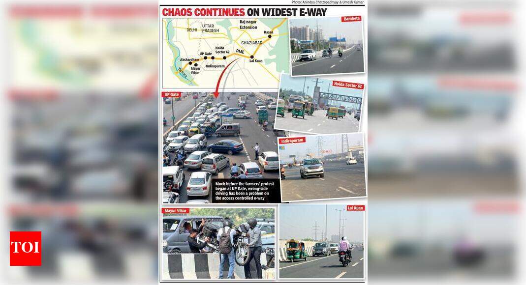 NHAI places guards to curb wrong side driving on DME Noida News