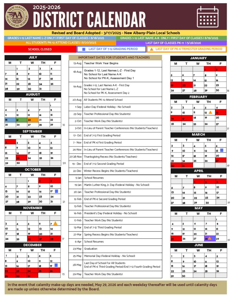 New Albany Plain Local NAPLS Calendar Revised PDF 25 26 EduCounty