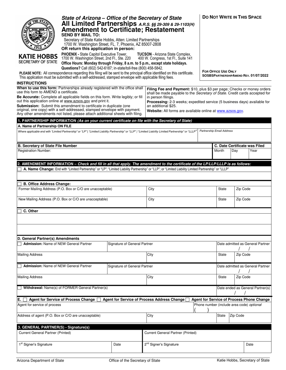 Arizona Amendment to Certificate Restatement Fill Out Sign Online