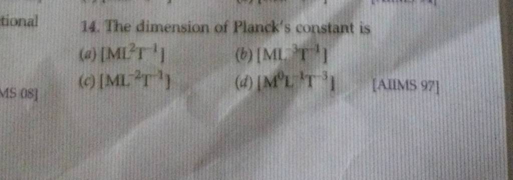 The dimensional formula of Plancks constant is (1997 2009) Filo