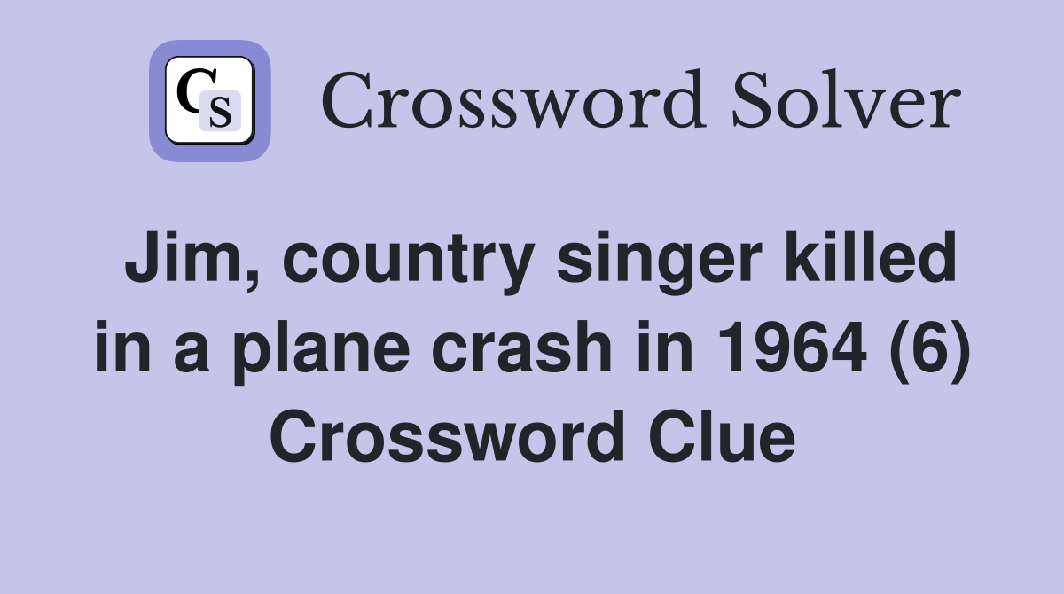 Jim country singer killed in a plane crash in 1964 (6) Crossword