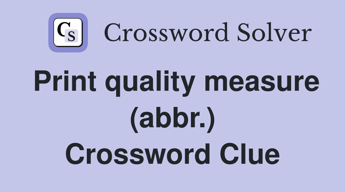 Print quality measure (abbr ) Crossword Clue Answers Crossword Solver