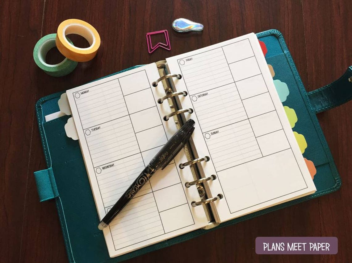 PRINTABLE Personal Weekly Planner Insert Lined Horizontal Etsy