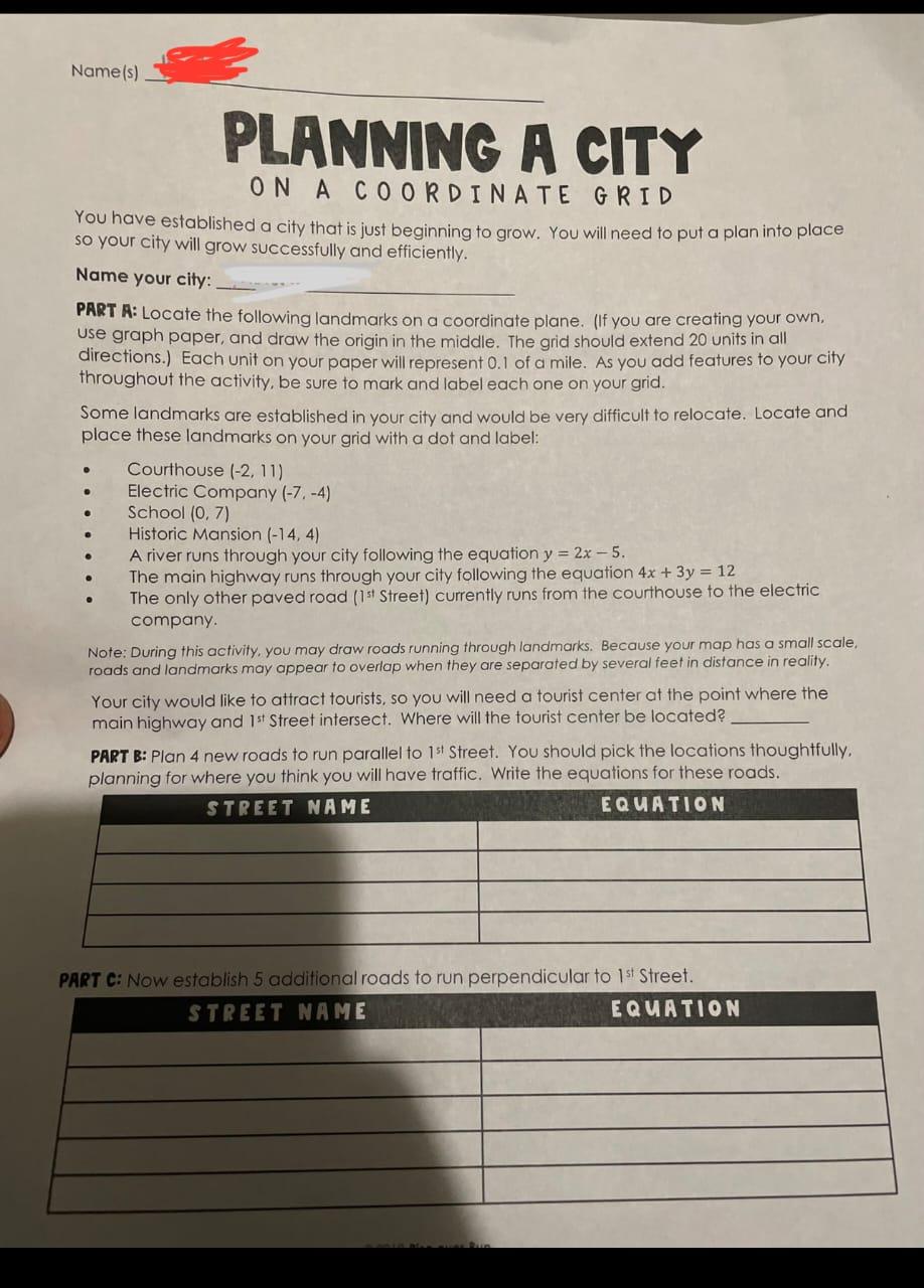 Solved Name(s) PLANNING A CITY ON A COORDINATE GRID You have Chegg com