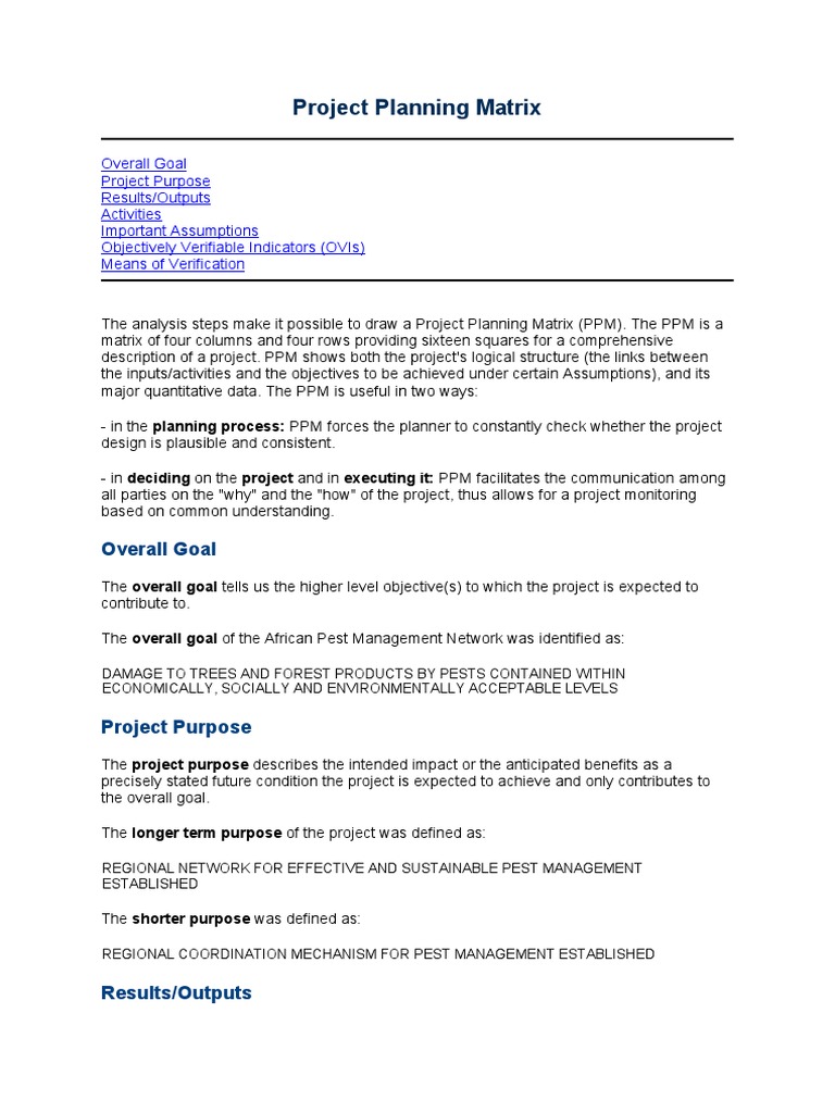 Project Planning Matrix PDF Food And Agriculture Organization