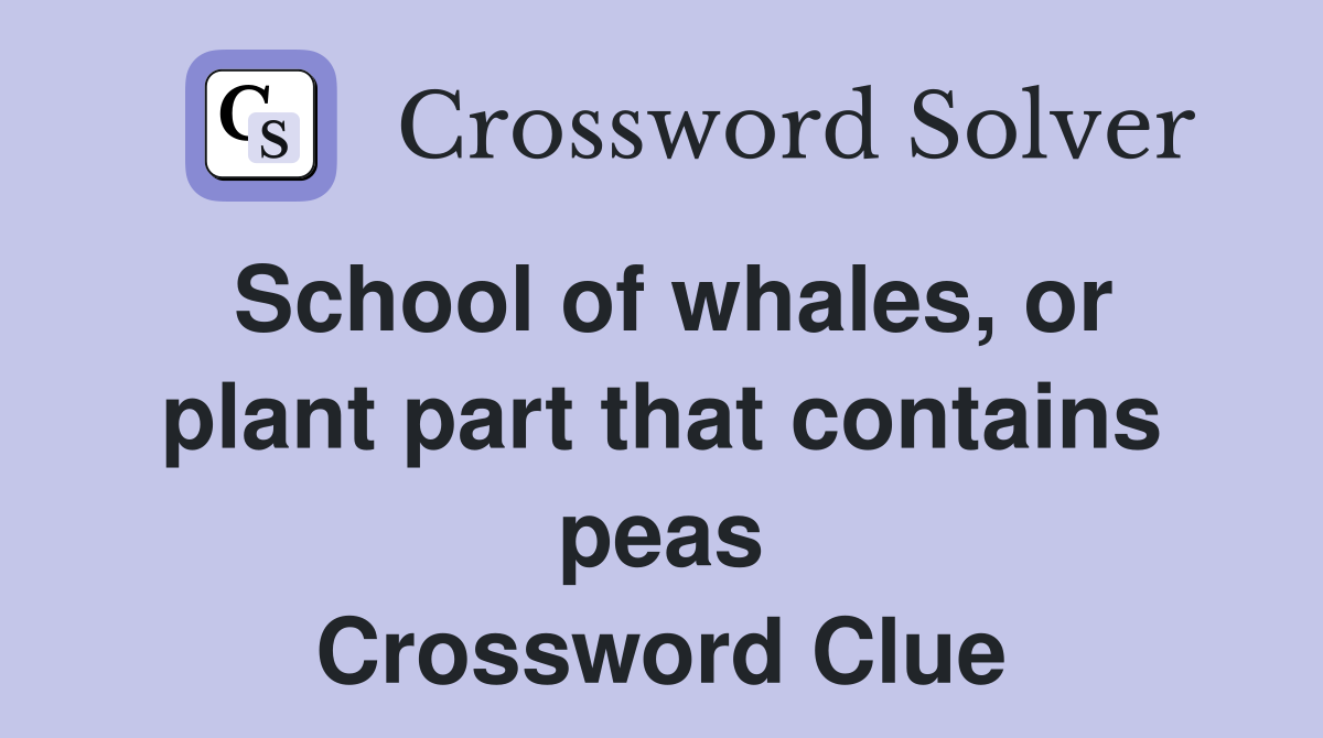 School of whales or plant part that contains peas Crossword Clue