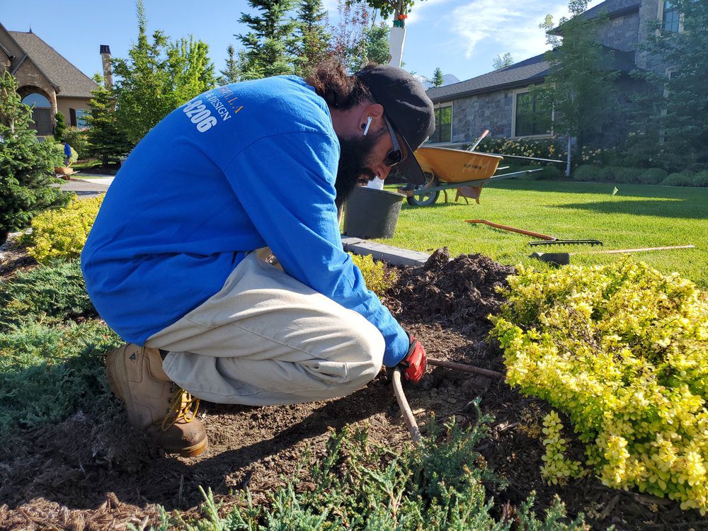 Men planting fertilizing watering Church Garden 5 23 2015 (4
