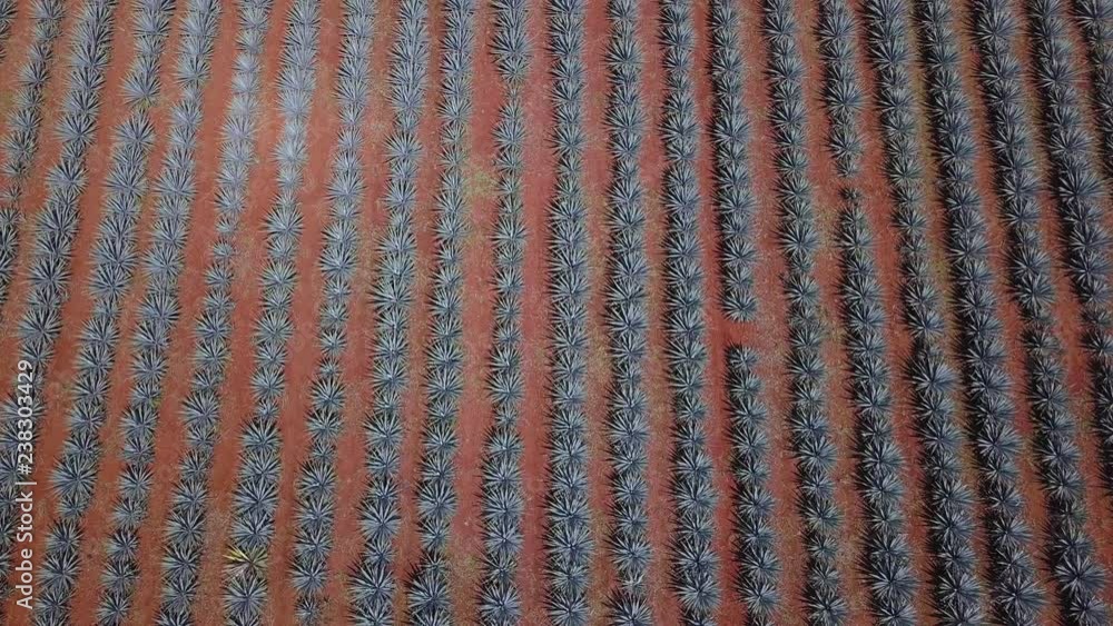 Tilt Up Reveal of Rows of Agave Plants in Field in Tequila Jalisco