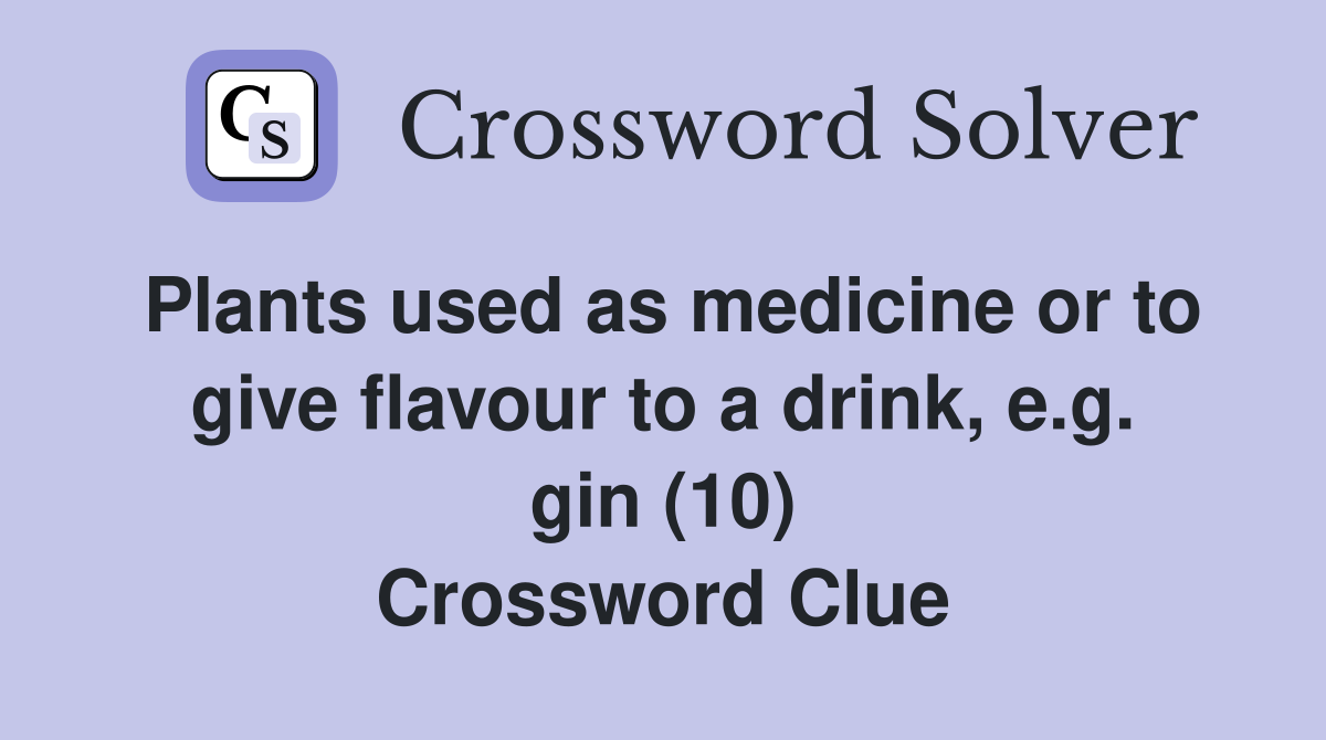 Plants used as medicine or to give flavour to a drink e g gin (10